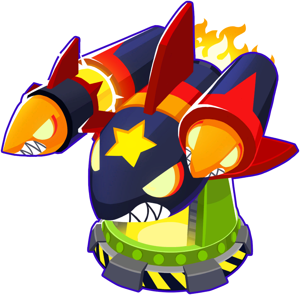 Combining major features from the Bloon Crush, MOAB Eliminator, and Bomb Blitz, this Paragon incorporates all features of the Bomb Shooter, except Frag Bombs. The main attack consists of very slow-firing homing missiles that deal huge damage and do a lot of knockback and pushback. Each missile is shot from the left and right, alternating each time. It is unable to detect Camo Bloons.