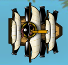 First of all, the Battleship gets bigger in size. Now it is equivalent to 3 regular towers. This upgrade adds two extra cannons. One on the right side, and one on the left. The other cannons are squished in a little to make room for the two extra. This upgrade also adds two extra masts. The masts are colored white, just like those at the front of the ship. The middle mast and the monkey are squished in to make room for the extra masts. The Battleship becomes a much larger pirate ship.