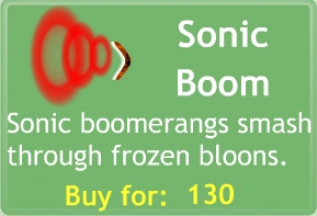 Boomerang is a monkey tower that throws boomerangs that pop up to 2 bloons each. It can be upgraded to pop more bloons or pop special bloon types.