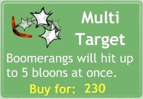 | Description: Boomerangs will hit up to 5 bloons at once.