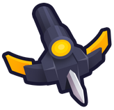 Effect: Attacks every 0.2375s instead of 0.475s, and deals 8 damage per hit and deals 80 damage per Critical Hit, increases pierce from 4 to 8, range from 60 to 80, and applies Critical Hits every 5 shots instead of every 10 shots. Can also damage any bloon type. | ||