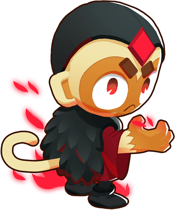 Druid of Wrath receives a wrathful makeover. It keeps its black thick-furred cape and wears a black veil that holds the red octohedral gem on the monkey's forehead. The Druid of Wrath receives full clothing, gaining a black cloak with long red sleeves and red hems, and wearing black socks and boot-style shoes. Losing touch with earth nature, the monkey loses its green shoulder cloth and head branch.