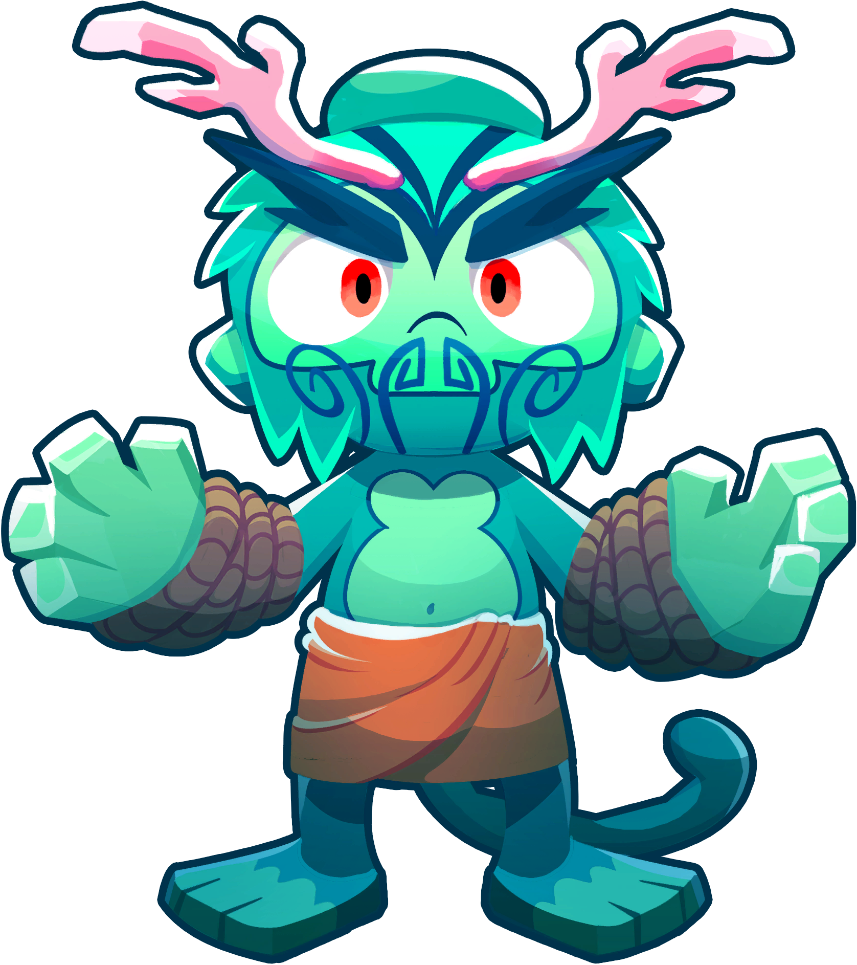 Heroes are powerful, unique towers with which automatically level up as the game progresses, gaining stronger attacks and activated abilities. Each player chooses a hero before battle, and different voice lines, animations and skins can be unlocked through player progress. Only one hero may be placed per player.