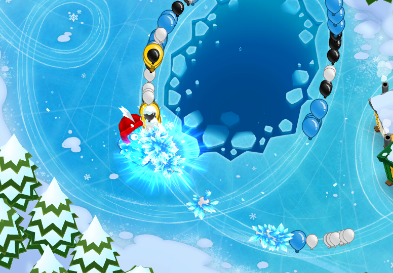 Planting icicles on groups of bloons. Some Whites have been hit by the planted effect but some of the whites have those effects weared off.