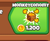 Monkeyconomy, formerly known as Monkey Town, is the 3rd upgrade on Path 3 of the Monkey Village in Bloons TD Battles 2. It is now entirely new compared to its BTD6 counterpart. Instead of bonus cash per pop, it generates 4 crates worth $100 each during every round.