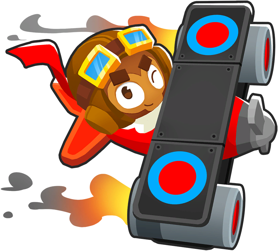 Monkey Ace moves in a fixed pathway around its base, flying above all obstacles. Creates Barrage projectile from center of Monkey Ace and targets the first bloon. Automatically generate Homing Dart from the center of the Ace according to its attack cooldown value.