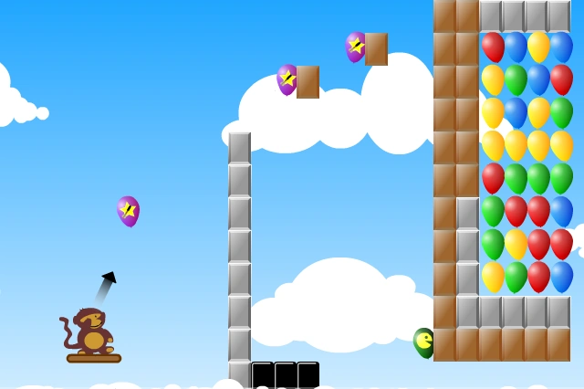 To complete this level, all you have to do is pop the Bonus Dart Bloons for extra darts. Next, try aiming for the Pac-Man Bloon, and use it to pop some bloons. The Rubber Blocks can be used to pop the bloons on the right side, but this method is recommended if the Tile Blocks were destroyed.