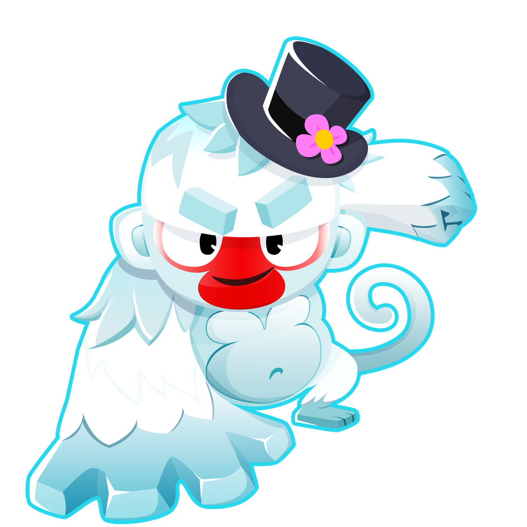 Pat Fusty's first skin, Fusty the Snowman's ordinary appearance is how he looks like at Level 1 in BTD6. Fusty the Snowman is a giant monkey with white fur, a red face, and a black top hat with a black ribbon and a pink flower. He has thick muscular arms and large hands, a large belly, but skinny legs and small feet compared to the rest of his body.