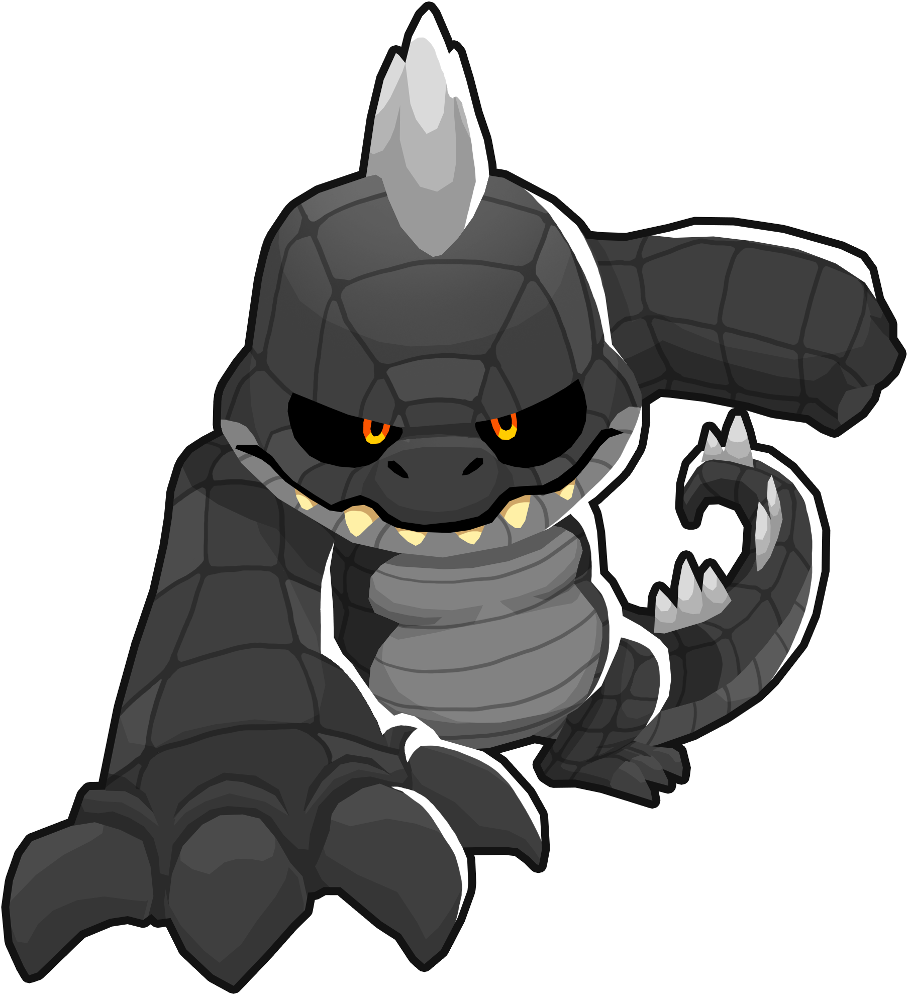 At level 10, his hue changes to a magma-like orange, and one of his sides becomes robotic, based on Mechagodzilla.