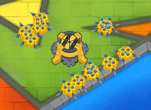 Perma-Spike is exceptionally powerful when very careful spending and stalling techniques are implemented, due to the nature of this tower. Spikes last extremely long, making optimization of stockpiling techniques a major necessity for maximizing the true power of Perma-Spike. The role of Perma-Spike mainly comes into play during the late-game to tank a substantial amount of bloons, working very well on maps with only one exit.