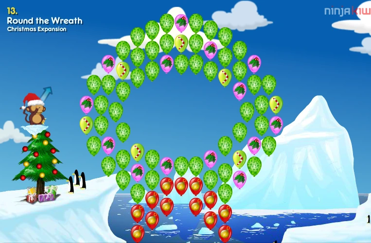The bloons are positioned so that in this level, there is a shape of a Mistletoe.