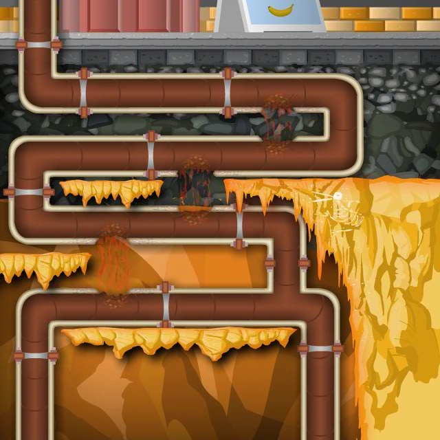 Subterranean Sewers is an Intermediate Difficulty Track for Bloons Tower Defense 4 Expansion which represents a sewer, hence the name. Along each row of pipes are two entrances and two exits, marked also by the gaps along the pipes. This track suffers the Locked Bloons bug, where the bloons won't come out even if you press the "start round" button.