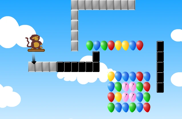 To complete this level, the player has to shoot the darts so that they bounce off the rubber blocks and hit the bloons at the top and then use the rest of the darts to hit the Tack Bloons. If the player aims carefully, it is possible to beat the level using only one dart.