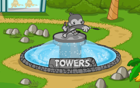 "where towers are operated by monkeys, and they fight agains bloons hordes."