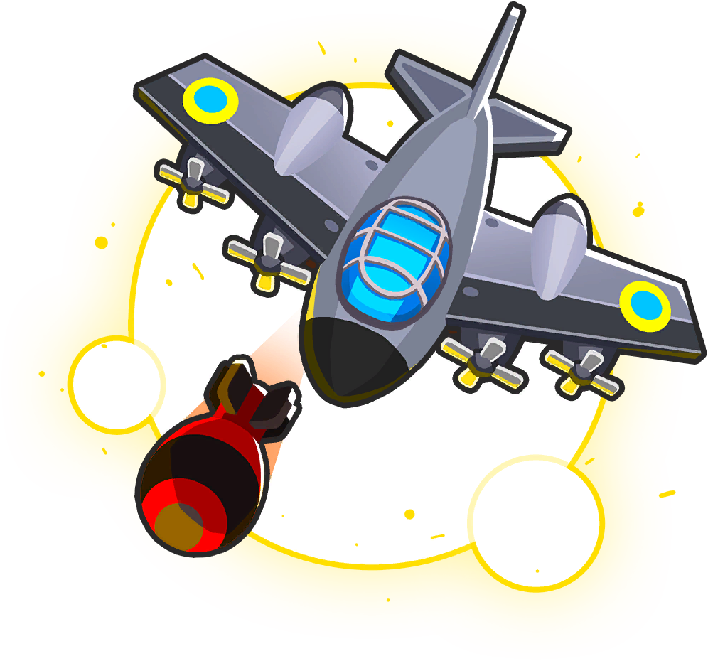 The Tsar Bomba in Bloons TD 6, an upgrade of the Monkey Ace, has a powerful ability that inflicts 3000 damage to a maximum of 5000 bloons. It also stuns MOAB-class Bloons, except the BAD, upon impact. The ability targets bloons near the center of the Ace's runway and has a deployment delay of ~0.8s. The ability's cooldown is 35 seconds.