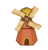 The level 2 windmill is an improved version of level 1. The wood in the building has no gaps and is red-orange in colour. The roof is made of yellow wood and the blades appear to be made of cloth. It also has a door.